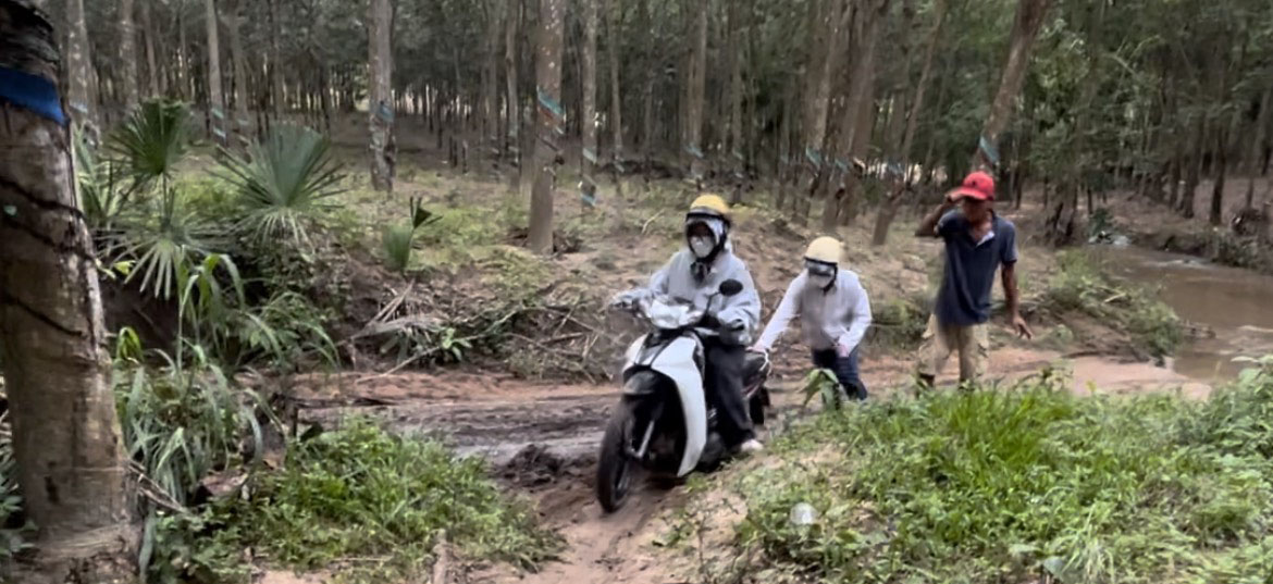 Đến nơi, chúng tôi có trò chuyện với “anh bản địa tốt bụng”- anh Phụng – và được biết thêm sự thật đằng sau. Anh nói:”Tui có thằng con, cũng trạc tuổi mấy cô cậu ở đây, nó đi tù rồi, 17 năm, bởi vậy bây giờ tui muốn làm phước, thằng con tui làm dữ, tui làm phước bù lại cho con cháu nó về sau. Thấy cô cậu có vẻ đàng hoàng, lại có học thức cao, tui khoái lắm, hồi đó tui học hết lớp 7 thôi,… Nghe đến đây chợt có sự im lặng thoáng qua, thấy vậy Trưởng Thi mới bảo thôi dù gì cũng trễ, cả đoàn nên về thôi. Trước khi ra về, mọi người ghé lại nhà anh, có đề nghị gửi anh một ít tiền coi như là đáp nghĩa lại với anh, nhưng anh không nhận.