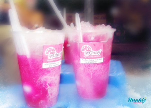Thức uống có rất nhiều nhưng nói đến Siro thanh long. Thức uống này do chính tay các thành viên eChay chế biến từ những trái thanh long ngọt lịm nhà vườn. Cái chất nước keo màu hồng tím sóng sánh một dư vị khó tả ngay những hớp đầu tiên. Không như những thức uống khác lan tỏa ngay trong miệng mà nó sẽ nhẹ nhàng vị hậu nơi cuống họng. Với mỗi thực khách riêng biệt, vị hậu đó sẽ có một cách cảm nhận rất khác nhau theo từng cách uống.
