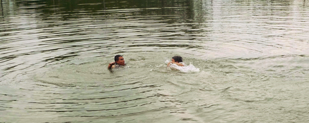 Đoàn Thanh đuối sức thật rồi, vội bơi ngược lại để lôi bạn ấy vào bờ. Khổ nổi sau một hồi vật lộn dưới nước, lúc này cả tôi và Thanh đều đuối sức. Thấy tình hình có vẻ nguy hiểm, tôi la lớn: