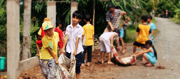 Khởi đầu buổi sáng ngày thứ hai, nhìn mặt ai nấy đều đơ ra, lặng lẽ ngồi ở một gốc cây. Còn lũ trẻ từ sớm đã có mặt ở trường vây quanh anh Đức và anh Dần – mang lại những tiếng cười vui tươi của ngày mới. Đến khi tập hợp mọi người lại ăn sáng uống café thì không khí có phần hứng khởi trở lại và có vẻ như nhiều năng lượng hơn. Chúng tôi lại bắt tay vào công việc, đã đến phần dọn dẹp vệ sinh và trang trí lại năm phòng học. Đến trưa thì phần điện đã hoàn tất ba phòng, hai phòng còn lại chúng tôi đành bàn giao lại cho trường và thầy hiệu trưởng với một số tiền hỗ trợ nho nhỏ. Ai nấy đều chúi đầu vào công việc để hoàn tất nhanh nhất mà chẳng để ý từ bao giờ các em học sinh đã tập trung đến trường và nô đùa đầy sân. Giờ sinh hoạt thì chưa tới nhưng mây đen thì đang ùn ùn kéo về. Chúng tôi buộc lòng phải thay đổi kế hoạch cho các em vào chơi trong lớp học trong khi bên ngoài trời mưa rả rích. Khi nhìn nét mặt hớn hở của các em lúc được phát quà và hăng hái tham gia các trò chơi thì chúng tôi nhận ra rằng các em đã mong mỏi điều này lâu lắm rồi và sẽ càng phấn khích hơn nữa nếu chúng tôi quay trở lại đó lần nữa…