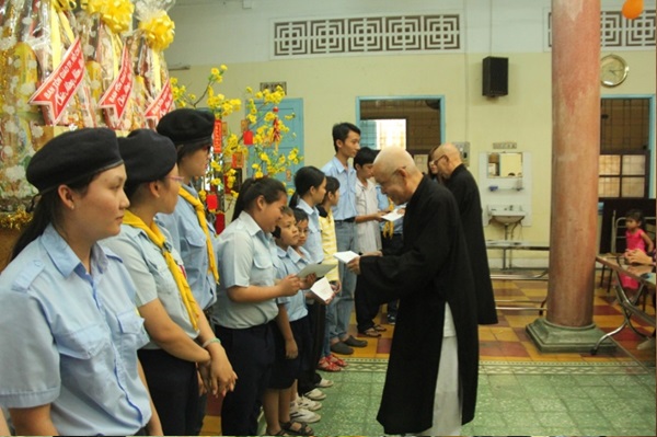 Quý ông bà Hội Thánh trao phần thưởng cho các em có thành tích xuất sắc và tiến bộ trong năm qua
