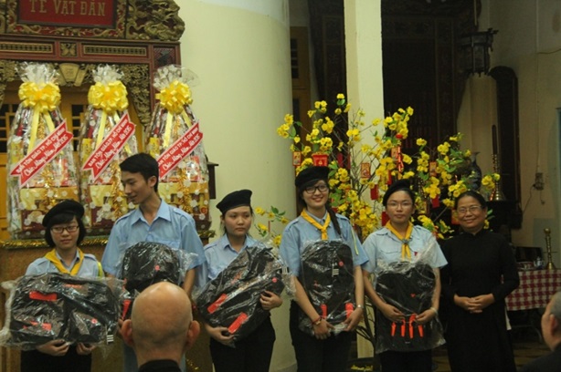 Chủ nhật ngày 8-2-2015 vừa qua, tại buổi lễ tổng kết, các em có cơ hội được nhìn lại một năm hoạt động của mình, nhìn lại những ưu điểm, khuyết điểm để từ đó cố gắng hơn trong năm sau. Ngoài ra, các bạn đoàn sinh xuất sắc với những đóng góp và nỗ lực của mình trong suốt năm cũng được tuyên dương và khen thưởng. Buổi lễ bắt đầu lúc 15g và cũng trở nên vui nhộn và thú vị hơn với phần trình diễn văn nghệ của các đội. Những tiết mục tuy mộc mạc, đơn giản nhưng thể hiện được sự cố gắng của các em đoàn sinh.