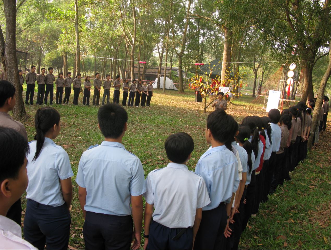 vào lúc 8h sáng ngày 01.01.2010, Tiếng còi của Trưởng Tuấn Khanh vang lên, tất cả các tiểu trại tập trung về trước cột cờ đề chuẩn bị chào cờ đầu năm - cùng lúc đó, sau khi đã hàng đội thành chữ U thật to cũng là lúc đón tiếp các Ông Bà , các vị chức sắc đến cùng chào cờ với tất cả Trại sinh...