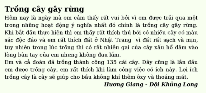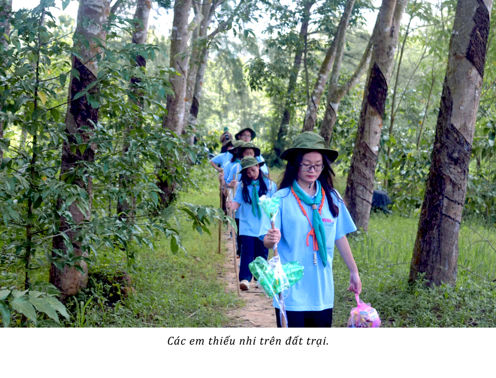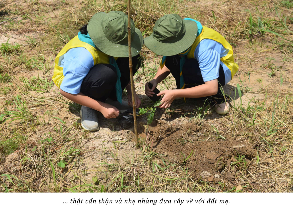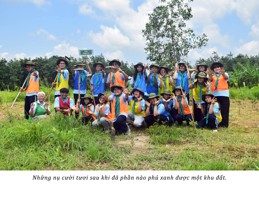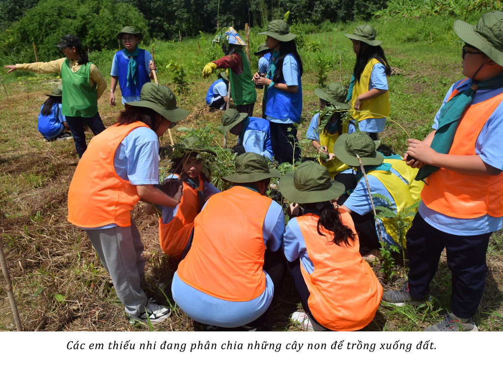 Một trong các hoạt động đặc sắc nhất của kỳ trại chính là lúc các em được tự tay trồng cây gây rồng. Những bàn tay non nớt, trắng trẻo nay chạm vào đất, chịu gai đâm, rễ bám. Đây là hoạt động đẹp đẽ vô cùng vì các em trải nghiệm một bài học lớn lao bằng tất cả giác quan của mình: cây xanh là sự sống biểu hiện ra một cách hiền hoà và nhu thuận nhất trên đời. Sau khi tự tay xới đất, các em thiếu nhi nâng niu từng chiếc lá, ngọn cây, nhánh rễ và các em đặt cây thật nhẹ nhàng vào đất như sợ làm cây bị đau. Các em cảm nhận được cây non không khác gì các bé sơ sinh, cần được chăm sóc đúng cách và ở bên cạnh đất mẹ. Sự nhạy cảm và tinh tế của các em cũng từ đó mà phát triển. Có em đã phát triển hơn khả năng quan sát, khi em nhận ra rằng cây cối và thực vật có rất nhiều màu, không thể chỉ mô tả chung bằng “màu xanh lá”. Để hiểu điều này, xin hãy đọc vài dòng cảm nghĩ dưới đây của một em thiếu nhi viết ra sau khi tham gia hoạt động.