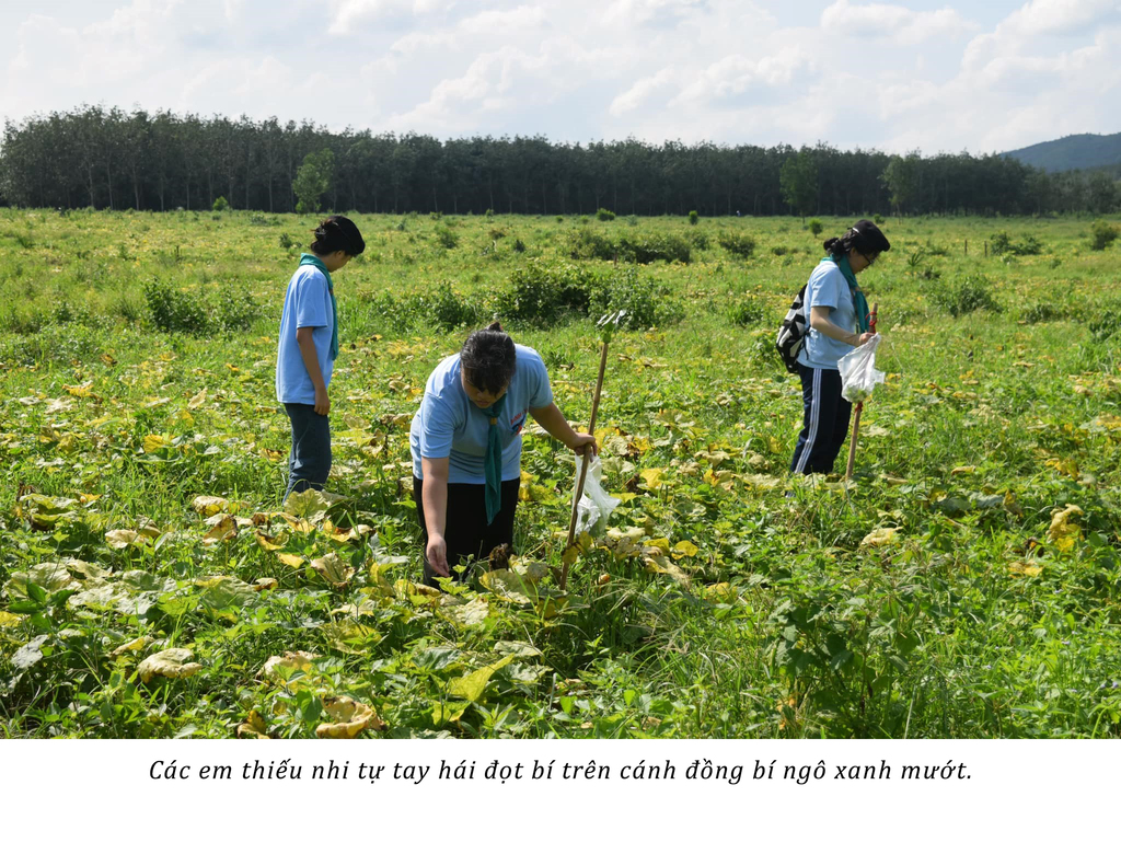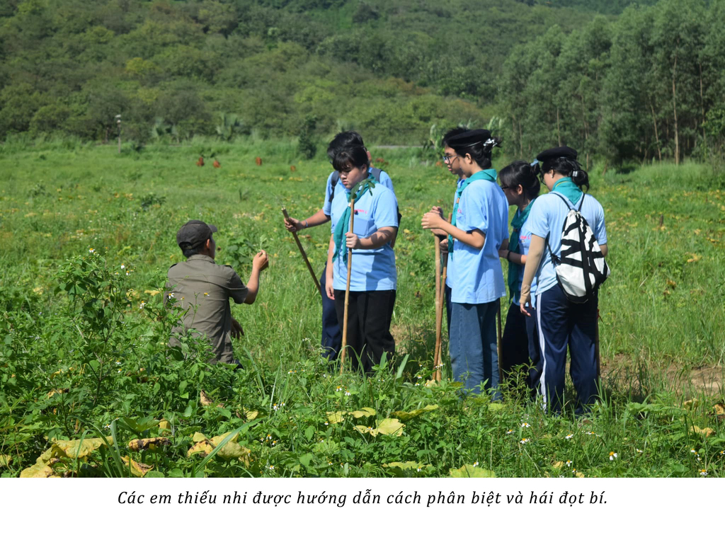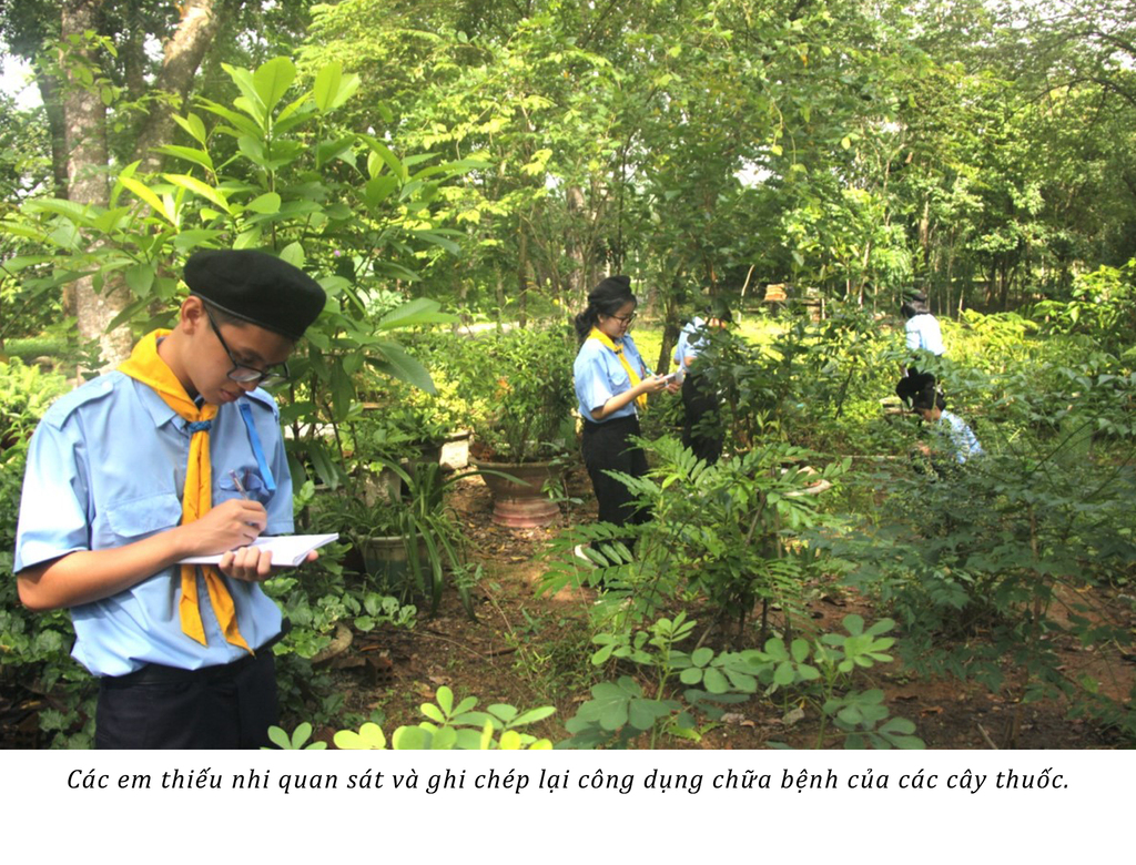 Sống giữa rừng cây trong 3 ngày 2 đêm liên tục, các em bắt đầu hiểu ra điều mà ông bà xưa thường nói: “đói ăn rau, đau uống thuốc”. Cụ thể hơn, các em nhận ra rằng rau và thuốc đều là nói đến các loài thực vật trong tự nhiên, không phải là những viên thuốc tây bày bán ở các nhà thuốc. Các em được đưa đi vòng quanh khu đất rộng lớn và được hướng dẫn cách phân biệt các loại cây, công dụng y học của chúng là gì, được chỉ cho các loại rau, cách hái và chế biến chúng thành các món ăn. Các em được tự tay hái rau để sau đó về nấu ăn. Rất nhiều em lần đầu tiên nếm món đọt bí xào, hay được nhìn thấy búp măng non thực tế ra sao. Thực vật dưỡng nuôi sanh mạng con người khi trở thành thức ăn cung cấp chất dinh dưỡng và trở thành thuốc giải nguy cho con người lúc ốm đau. Từ đây, các em cảm nhận bài học thứ hai về thiên nhiên: các cánh rừng và dòng sông là những sự sống vĩ đại hơn con người chúng ta rất nhiều; vì bảo sanh dưỡng mạng tất cả các loài, thiên nhiên sẽ luôn trường tồn, vượt lên trên dòng chảy thời gian.
