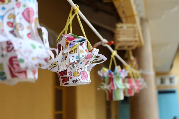 Sân chùa được treo những chiếc lồng đèn do chính tay các em Đồng sinh và Thiếu sinh thực hiện. Những chiếc lồng đèn đầy màu sắc tỏa sáng rực rỡ kết hợp với không khí đầy ắp tiếng cười nói đã khiến cho buổi lễ thêm phần nhộn nhịp, sinh động.
